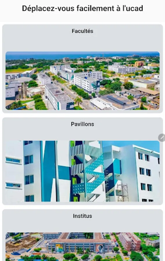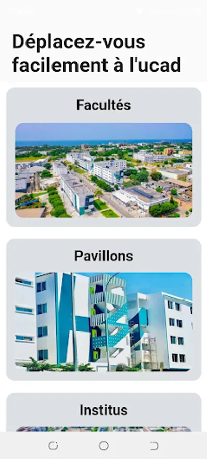 Gindima is an application aimed at facilitating the movement of students, teachers and staff of the University Cheikh Anta Diop of Dakar by providing them with an intuitive and easy-to-use platform to find and navigate to the various faculties, institutes, restaurants, and other points of interest on campus.