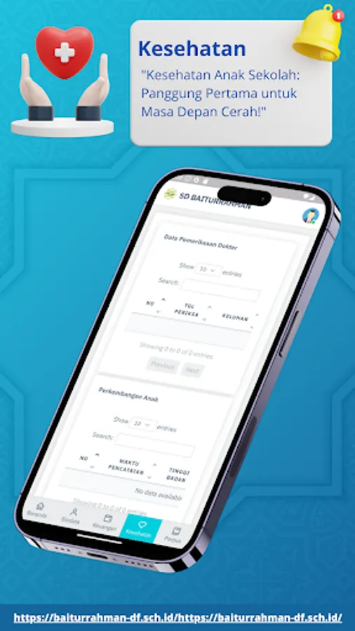 4. Health: Monitor the development and health of children starting from doctors' examination data, child growth and development, child immunizations, children's personal hygiene data and menstrual data for girls.