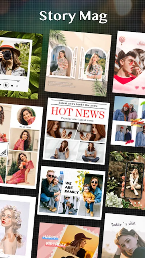 Collage maker pro and photo editor is the most aesthetic professional collage photo software for adding magazine template photo frame to multiple photo collage.