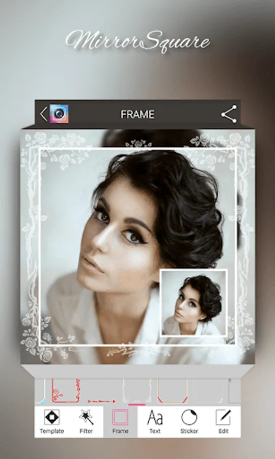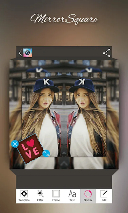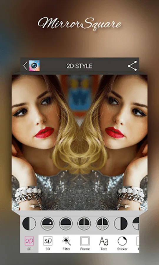 Square Mirror Photo is used for create photo mirror effect, and also provide lots instamag mirror effects. Mirror image mirror worlds. Insta Square Mirror Photo provide 2D mirror effects and 3D effects . And you can use the effect to make your photo be more beautiful . We provide a lot of 3D and 2D style . For example heart and butterfly and son on. Amazing photo mirror effect will make your photo be unique.