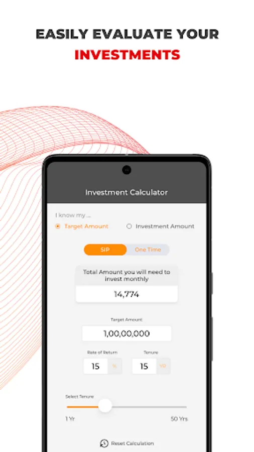 Calculate and set your targets quickly. Adjust your target amount, investment amount, tenure, rate of return for SIP & Lumpsum investments. This will help you to easily project your investments.