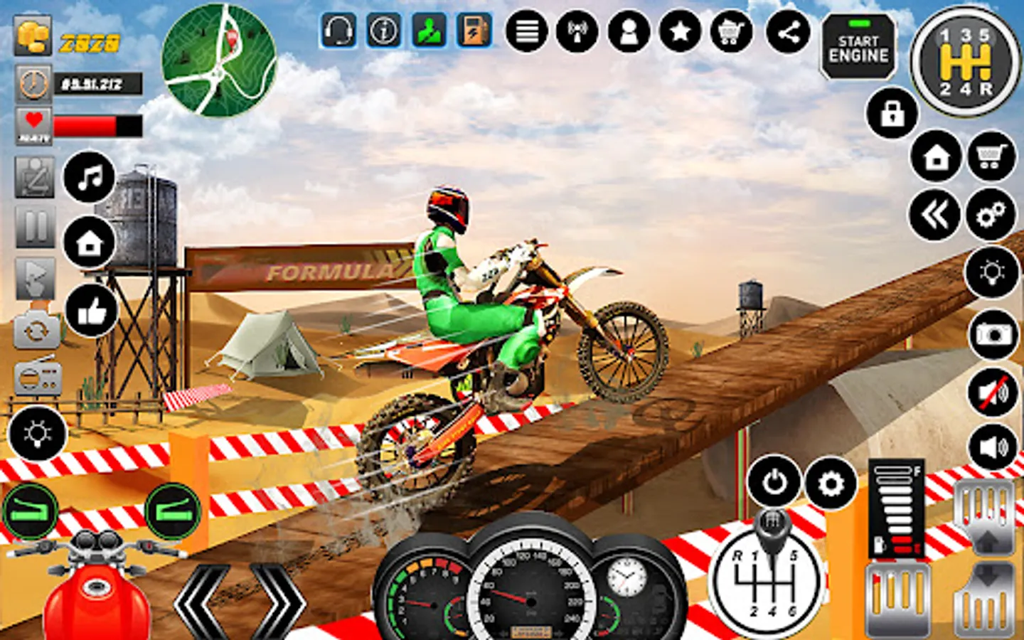 Bike Stunt game has the best bike controls along with realistic motocross physics. You will understand the true meaning of definitive gaming with this free game; the feeling of driving a real stunt bike in bike race game. Press the gas button to move your stunt bike, press break to avoid hitting any obstacles & jump button is also provided in this free game. Select your desired controls from the game settings in this free game.