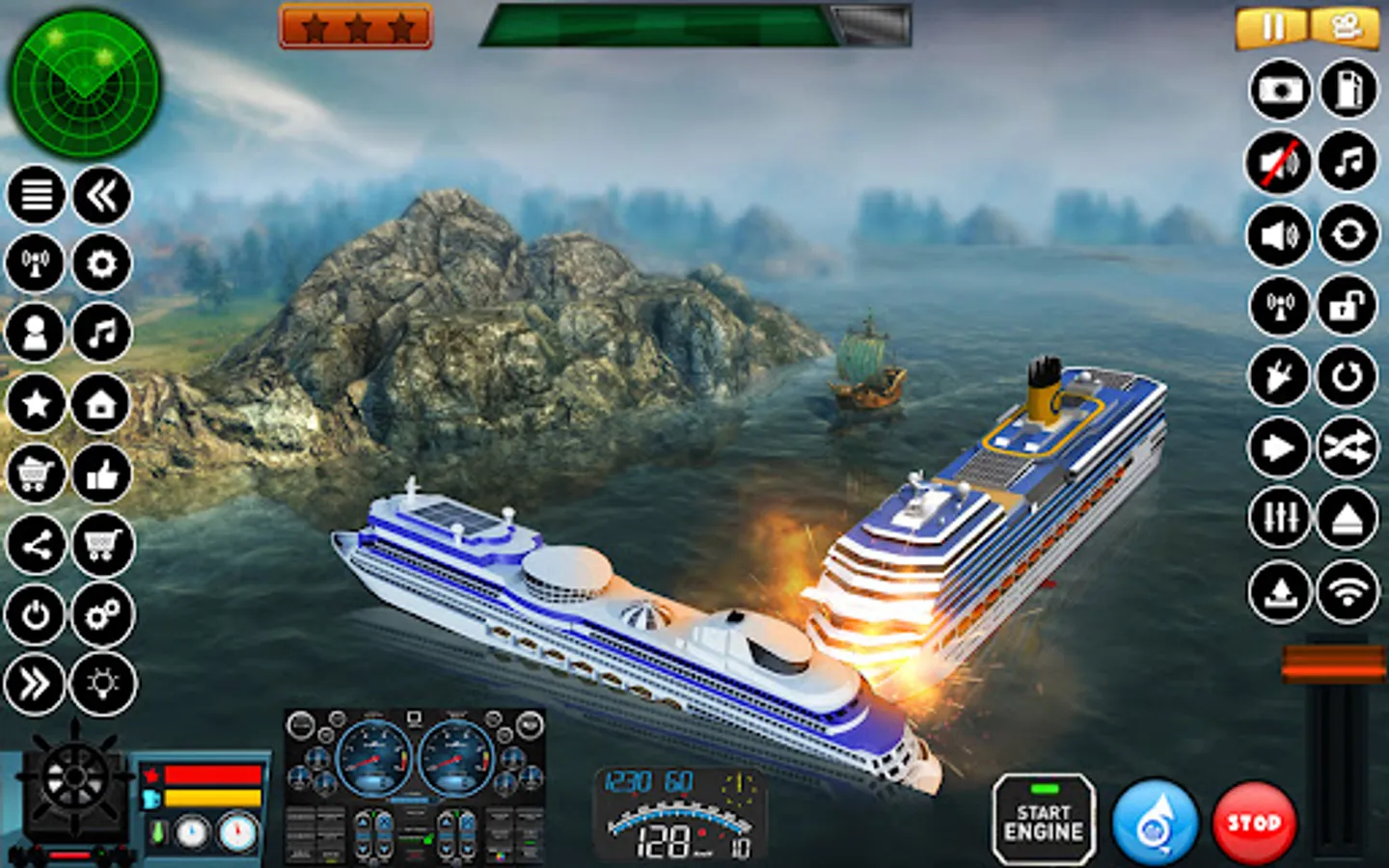 Here you will be allowed you to enjoy multiple driving and simulation experiences. Drive like ship simulator, Drive into the big massive sea and sail Big Ships.