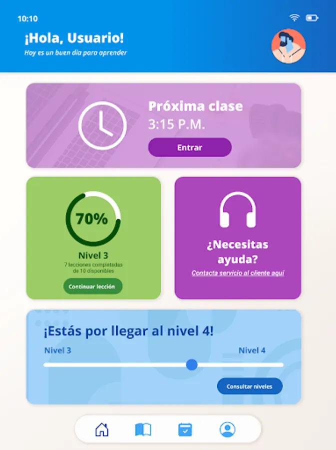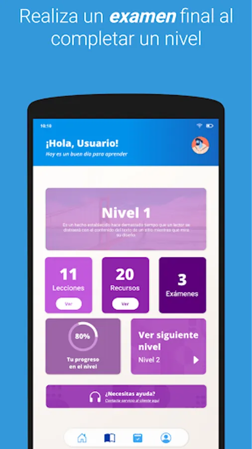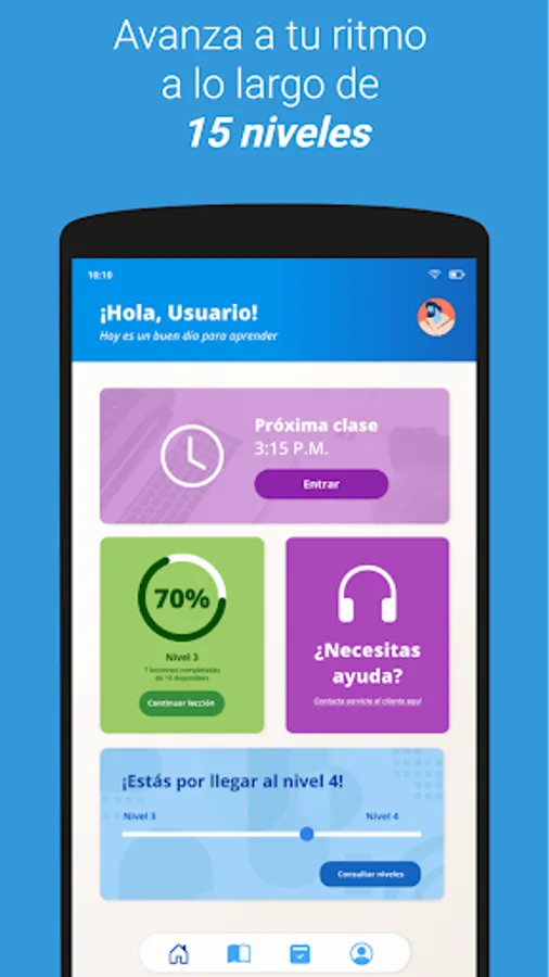Learn English in a course divided into 15 levels where you will progressively advance from the most basic level to the most advanced.
