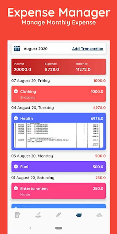Expense Manager: Money Manager helps you track your financial activity efficiently. Its simple design makes it lightweight, straightforward and very easy to use. Itβs done in one click because you donβt need to fill anything except the amount. You need just a few seconds daily to save the amount and each spending purpose. No matter where you are just a couple of taps will save your expense. Money management is always complicated. Most of them wonder where did all your money go. A simple personal finance app can help you manage your money and keep track of your expense.