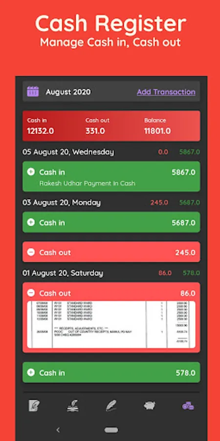 Cash Register: Simple Cash Register lets you manage your cash transactions just like bank transactions. You will not have to calculate your cash balance daily. Keeps track of your daily Cash Balance easily. A person with Simple knowledge of smartphones can operate this app. This is very easy to use. If you are an accountant then this is the best app to manage your daily cash