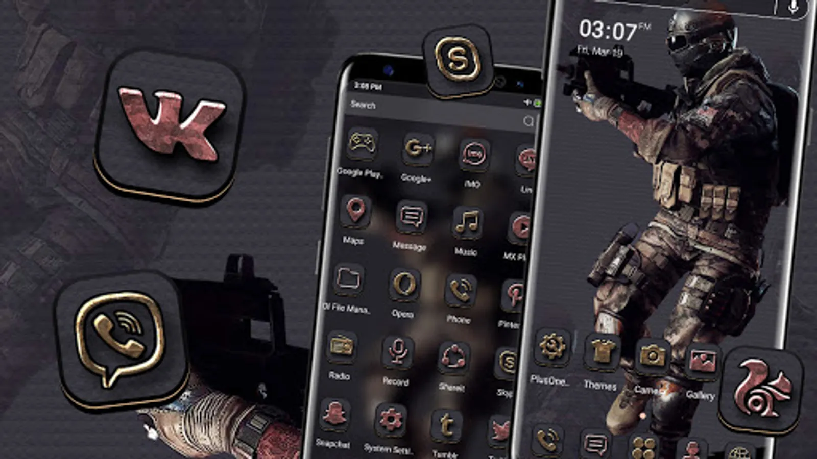 You can personalize your smartphone with the Black Commando Launcher Theme.