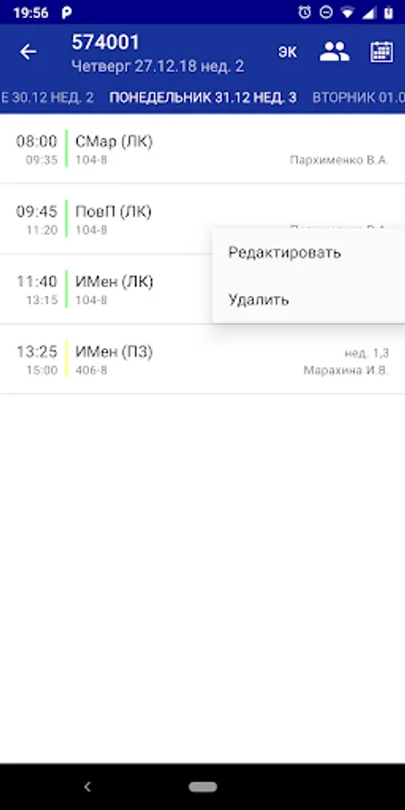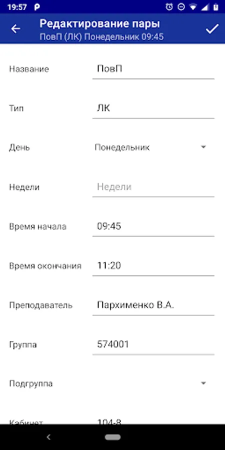 It is possible to edit, delete and add couples, as well as set the type of visit (you can not walk / you can skip / you must walk).