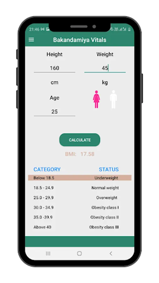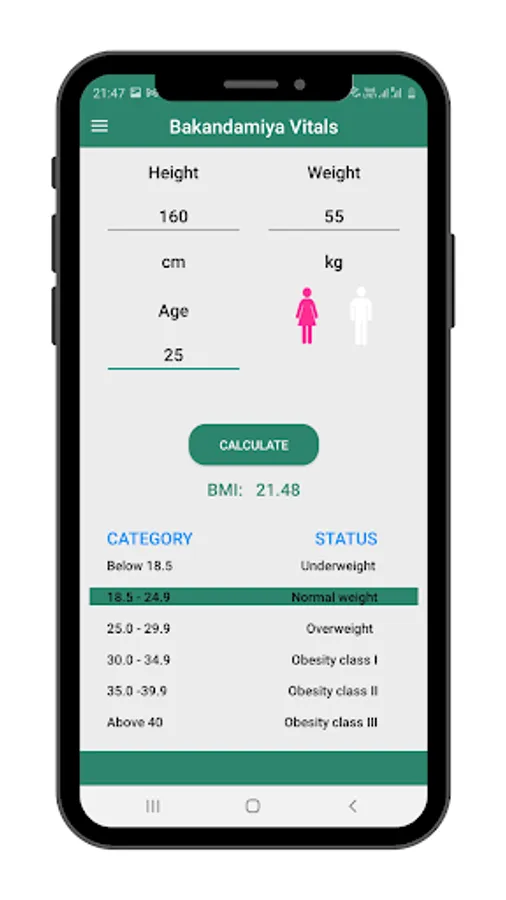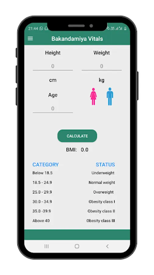 Bakandamiya Vitals is an app designed to provide a basic tool for measuring body mass index. It is meant to serve as a preliminary step to stay healthy and make informed medical decisions. It is never a substitute for medical prescription, so it should be used in consultation with medical personnel.