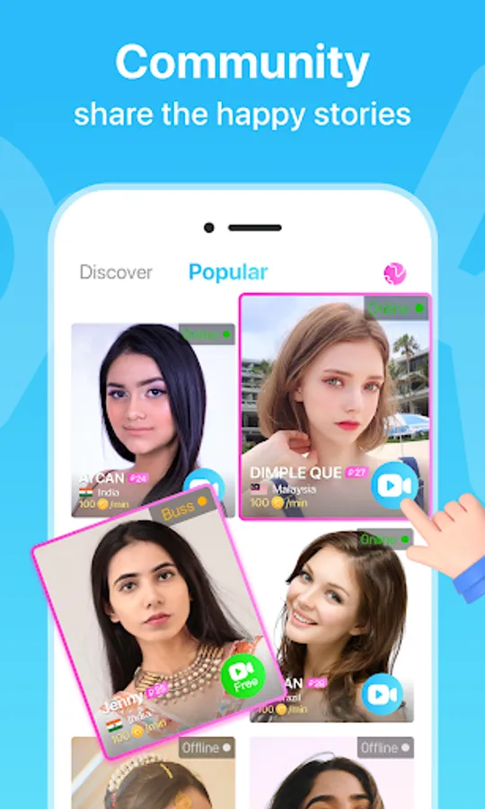 Our users have been certified by real people, and choose the best users to chat with you. Make the video experience more enjoyable.