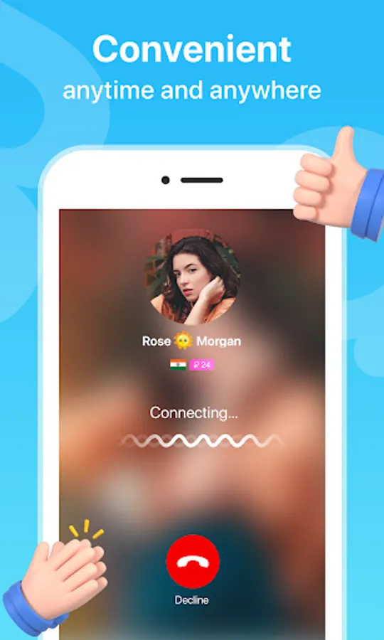 Use Facebook, Google or phone to quickly log in to bakbak pro and start real-time video chat with one click.