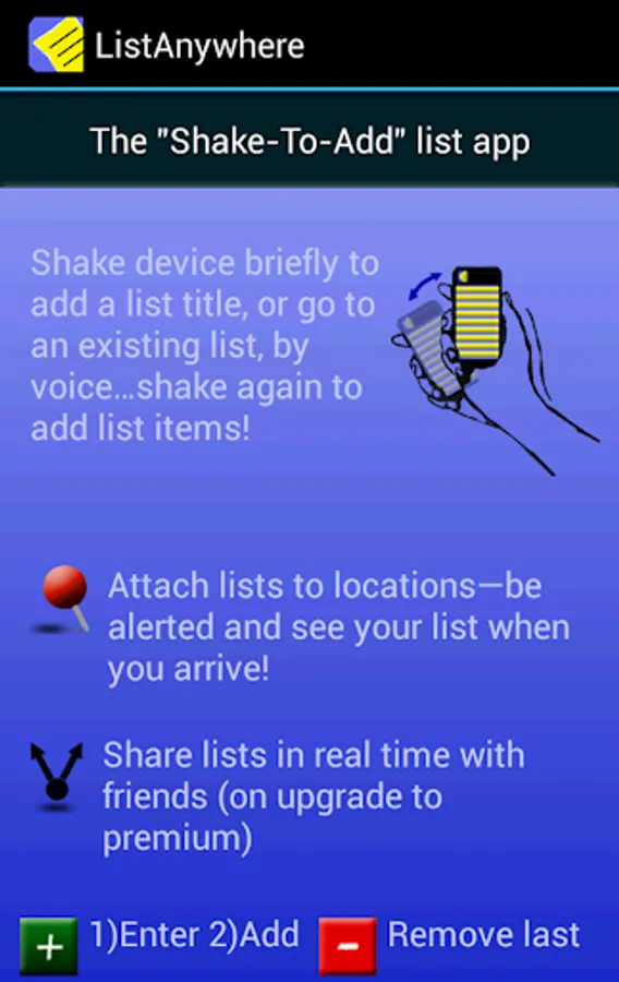 Shake your phone, create a list...shake again, add list items. Making lists couldn't be easier.