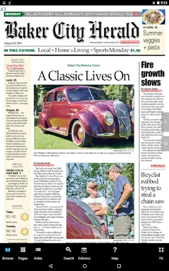 You can flip through pages and skim headlines as you would the printed edition. But better than that, Baker City Herald E-Edition allows you to enlarge type with the tap of a finger, or jump instantly to the conclusion of a story on another page. You can link to websites mentioned in stories with a single touch, or fire off an e-mail to an address linked from the newspaper. Even better, the E-Edition includes videos and photo galleries with many stories. And if you missed the paper one day, don't worry. Baker City Herald E-Edition lets you download past E-Editions, too. We offer local and regional news coverage, sports coverage, community news and lots more.