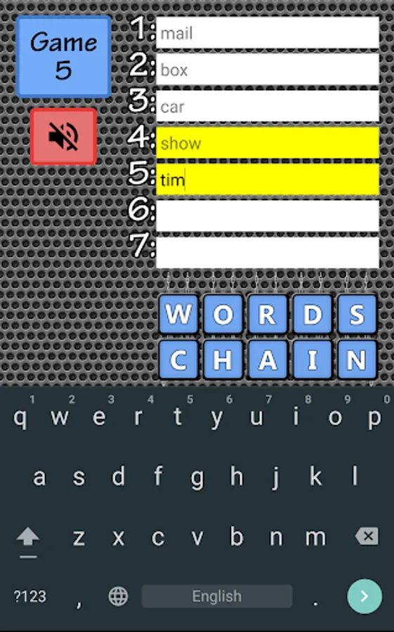 Words Chain is a challenging word game where you match two words together. Match seven words together and you complete a chain.