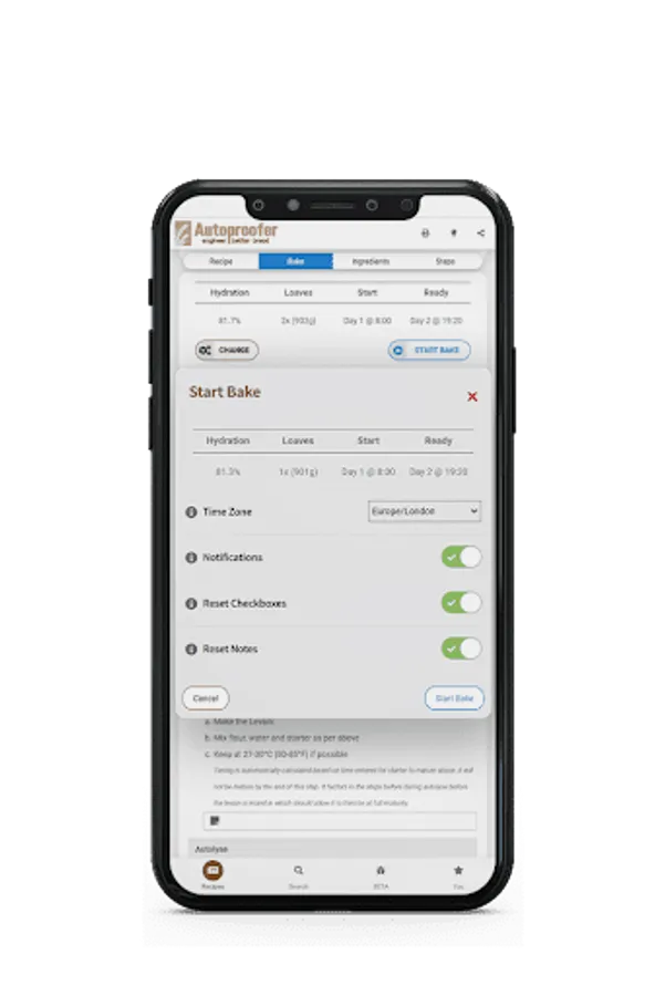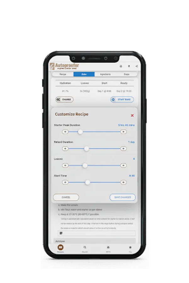 The Autoproofer App tailors top sourdough recipes to your unique starter’s performance and prompts you every step of the way to keep you on track. Instructional videos from the recipe authors guide you through each step to make the sourdough process as easy as possible.