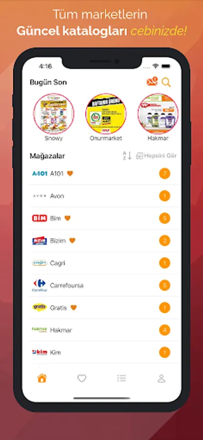 Current Actual application has only one purpose, to make you profit in all your shopping. You can add the stores on the homepage to your favorites by swiping right. In this way, you can see only the brands you are interested in in the My Favorite Catalogs section, and as the catalogs of the stores you add to this page are updated, you will be notified as a notification.