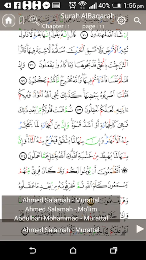 This program is an application to facilitate the provisions of reciting the Holy Quran using colors, the color of each rule.
