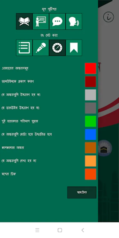 This application contain a display of Juz’ Amma with colors and applying this on the Ahakam Al Tajweed of the quran through the use of different colors .