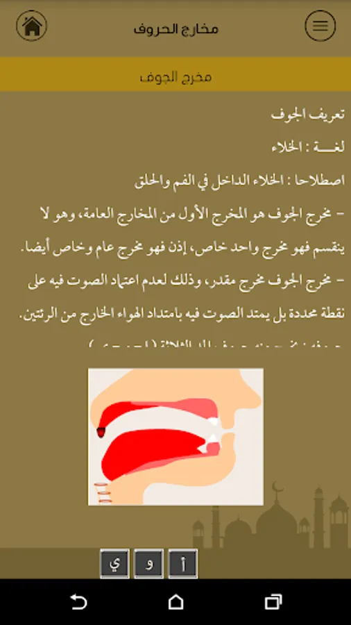 ويحتوي على مخارج الحروف وصفاتها وشرحها مع الأمثلة ونطق الحروف بالصوت والحركة.