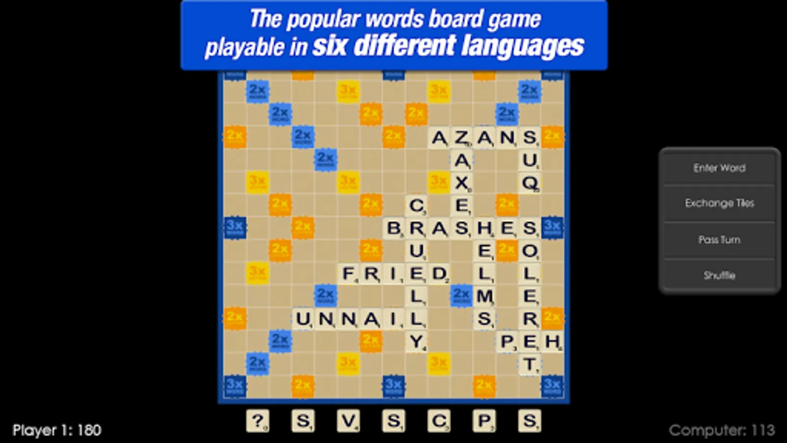 Skript is a popular words-building board game playable in six different languages: English, French, German, Italian, Portuguese and Spanish.