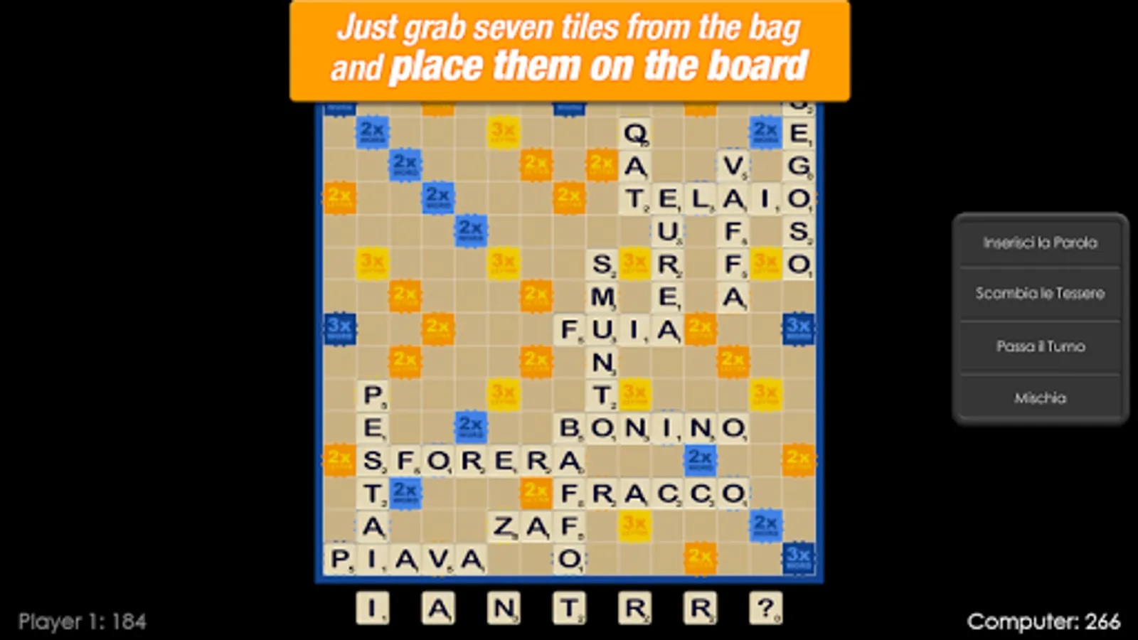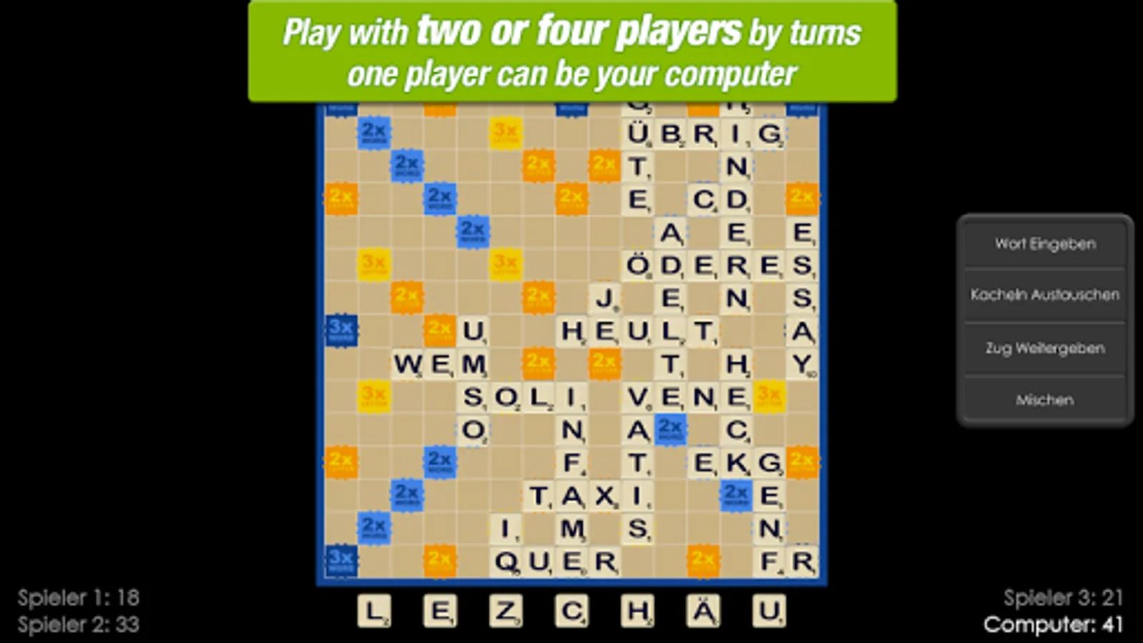 Grab seven tiles from the bag and place them on the board, constructing words and earning points. Two or four players play Skript by turns, and one of these players can be the computer.