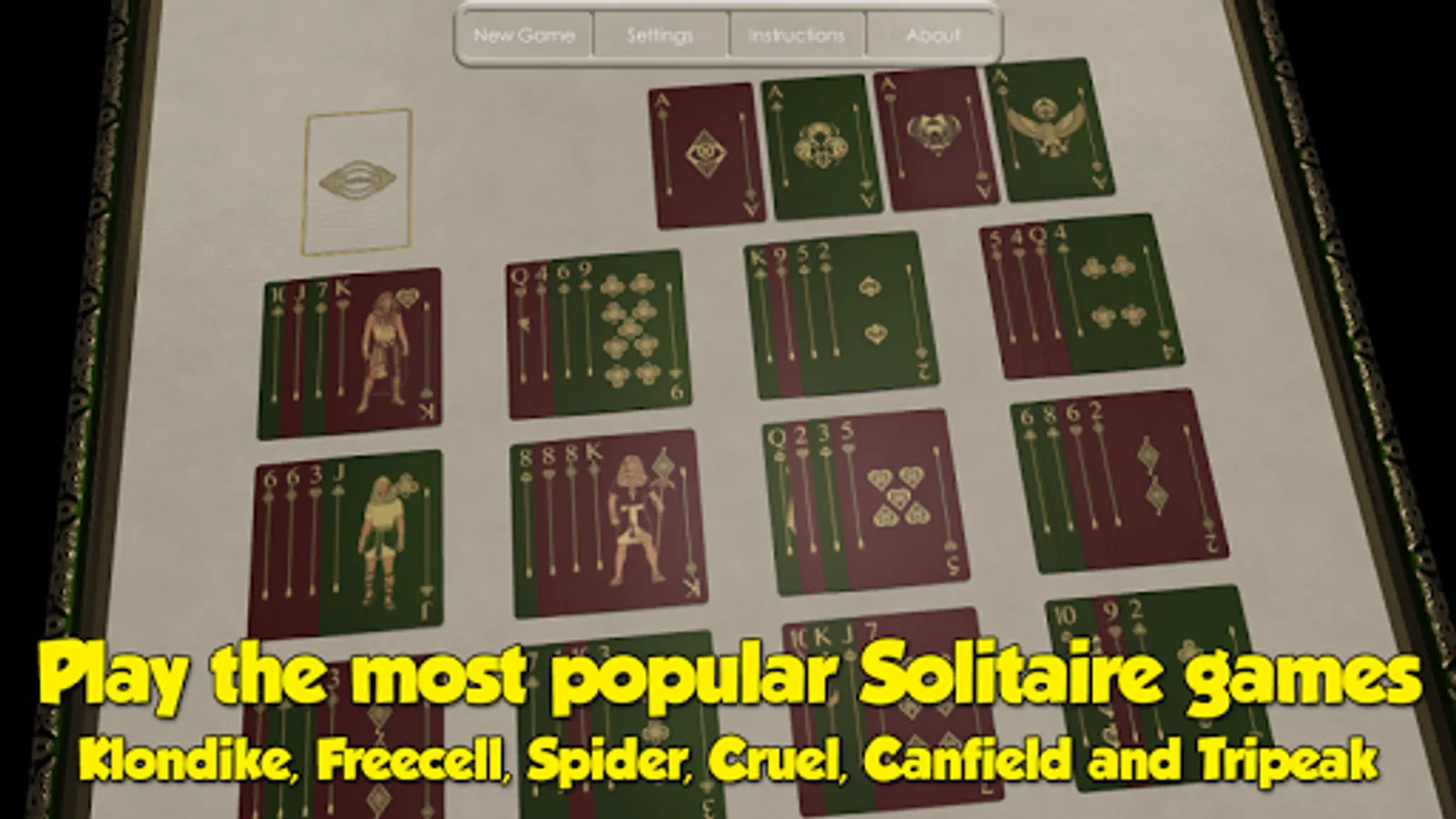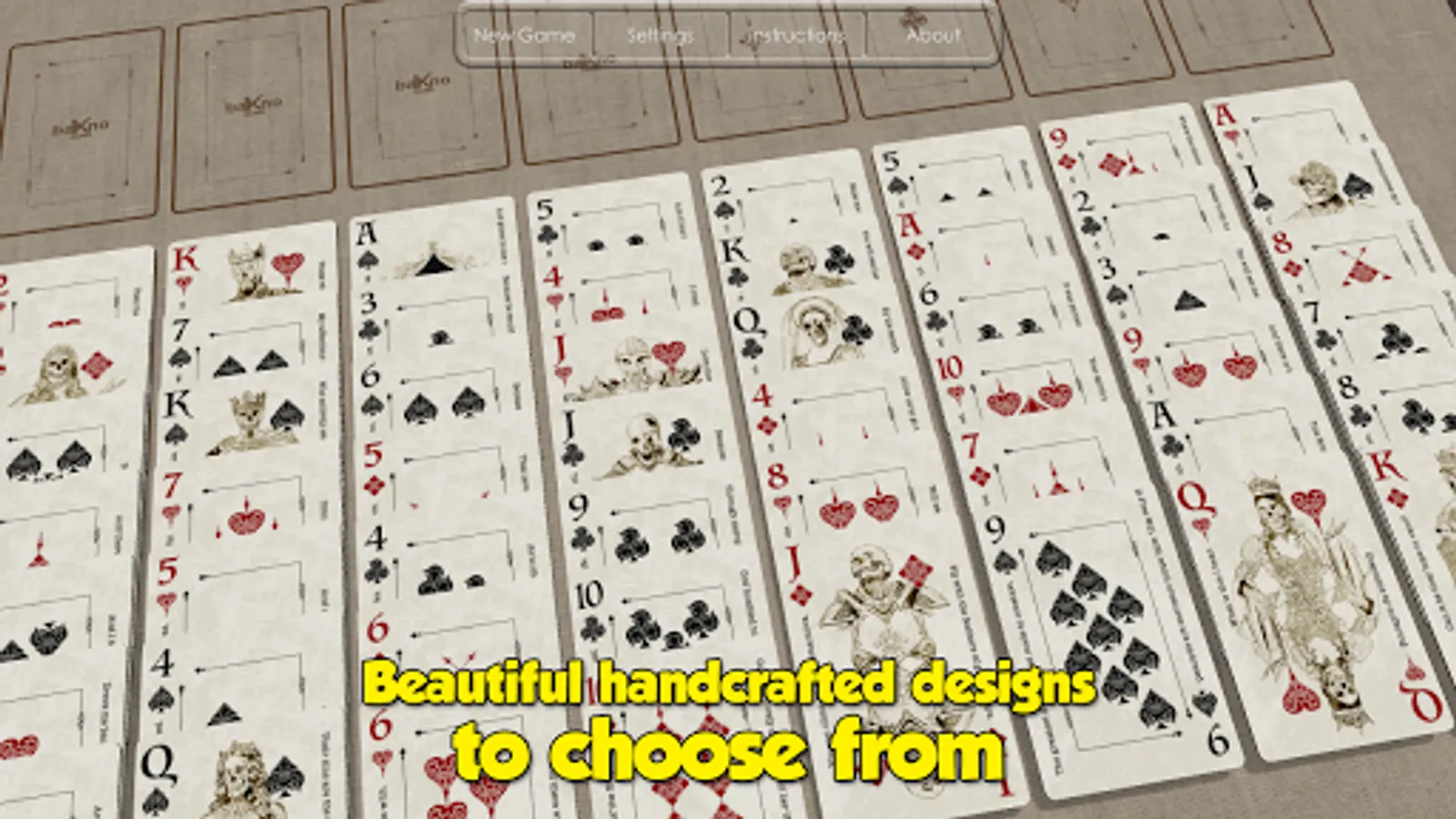 A collection of the most popular solitaire games, baKno-style. Beautiful handcrafted card sets are showcased in a 3D view with board rotation and zoom. baKno Solitaire includes some all-time favorites such as Klondike, Freecell, Spider, Cruel, Canfield and Tripeaks. Featuring original relaxing music that enhances your experience. Solitaire is a great way to pass time and exercise the mind. Just give it a try.