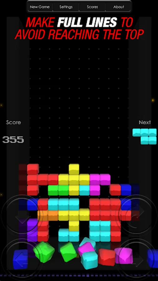 Unique shapes of colored blocks drop from the top. Your task is to avoid letting the stacked blocks reach the top by arranging them in complete rows across the bottom. A completely filled row vanishes, giving you more opportunities to score. This game requires superior finger-eye coordination to arrange the shapes quickly, and it gets faster with time. Enjoy! Check your skill against other baKno players around the globe by posting your score in our Top Players list.