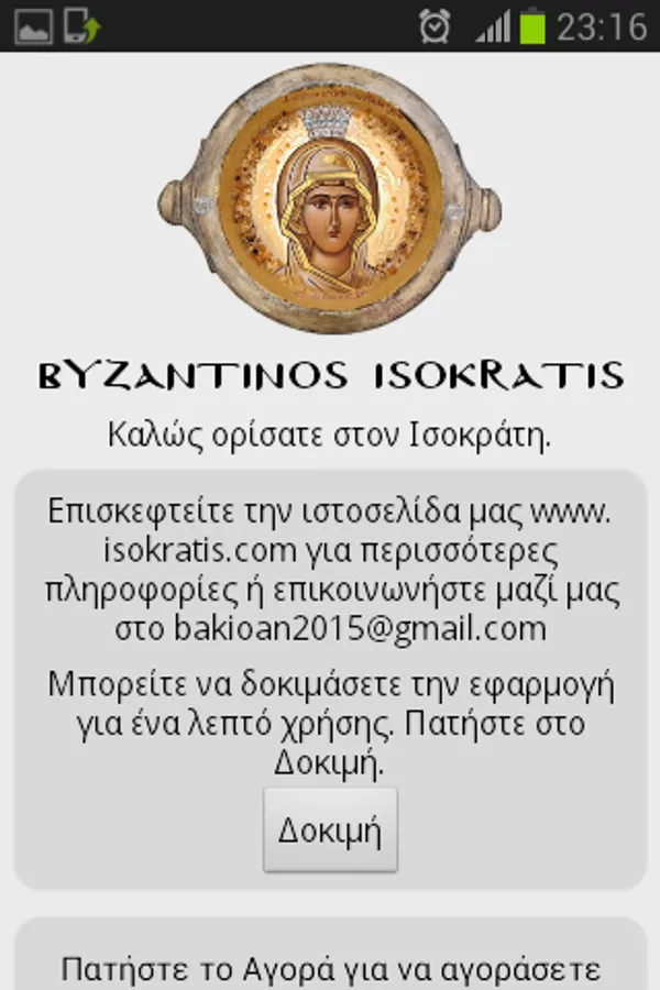 The "DIGITAL BYZANTINE ISOKRATIS" replaces or complements and guides the group of Isocrates in the performance of chant. Especially for the cantor who usually chants alone, without help from trained and experienced Isocrates, "DIGITAL BYZANTINE ISOKRATIS" is an ideal solution as it offers accompaniment of Isokratema with the most natural sounding, high volume and harmony.