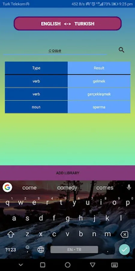 Bu uygulamayı kullanarak istediğin kelimelerin anlamlarını bulup birkaç örnekle beraber kütüphanene ekleyebilir ve daha sonra da bu kelimelerle oyun oynayarak zorlandığın kelimeleri rahatça öğrenebilirsin.