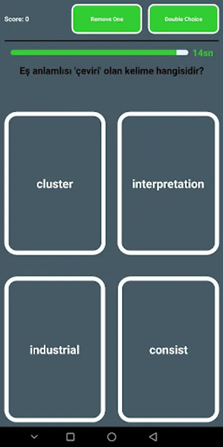 İngilizce kelime öğrenmek için oynadığın her oyunda puanlar kazanarak kendinle yarışa gireceksin ve her seferinde kazandığın puanın daha fazlasına ulaşabilmek için daha fazla kelime öğreneceksin. İngilizce kelime öğrenmenin farkına varmadan bütün kelimeleri öğrenmiş olacaksın.