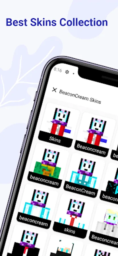 BeaconCream Skins for Minecraft is a free application that provides over 1000 skins from the famous YouTuber BeaconCream.