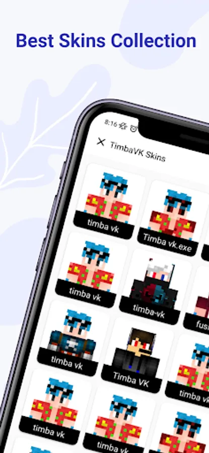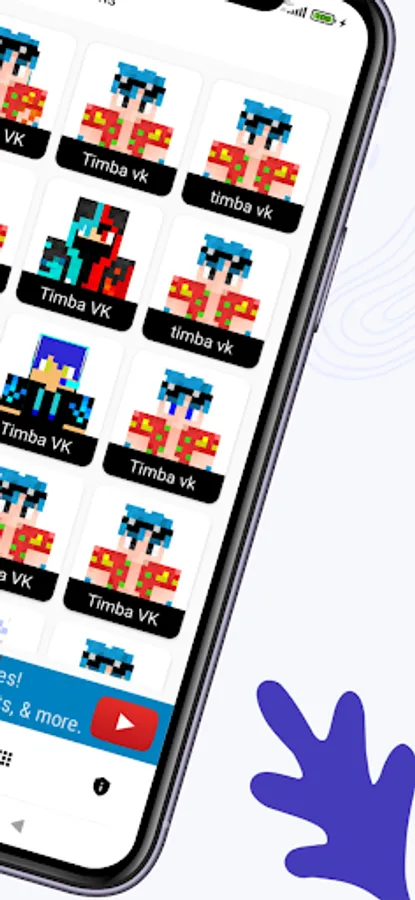 Timba Vk Skins for Minecraft is a free application that provides over 1000 skins from the famous YouTuber Timba Vk.