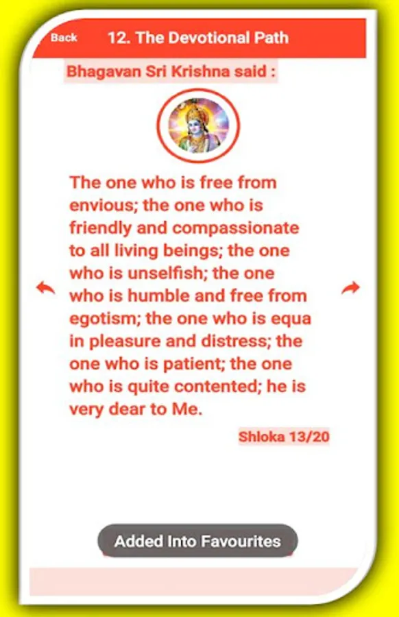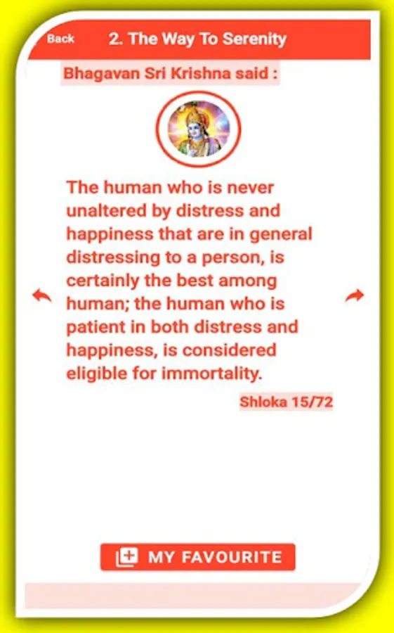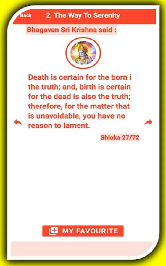 2. Shlokas (Verses) are provided with who said, which one you are reading and navigation to next and previous shlokas.
