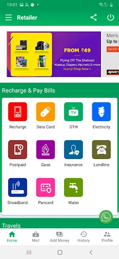 Online Recharge and pays bills online.B2C, B2B, Money Transfer, Aadhaar Enabled Payment System (AEPS), Mobile Recharge, DTH Recharge, Electricity, Gas, Water bill Payment, Travel Portal of India that Offers best deals on Flight Booking, Bus Booking, Hotels and Holiday Packages And many more.