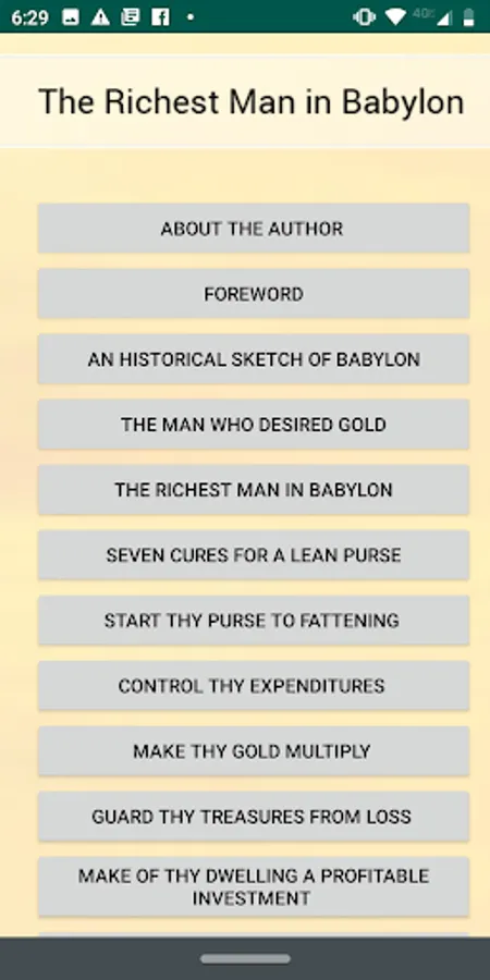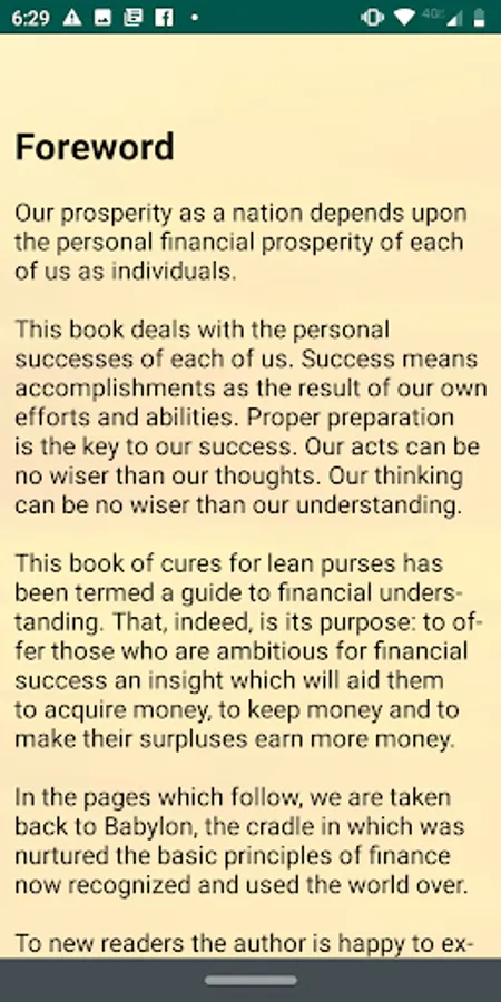 This app contains our custom e-book reader with the full contents of the Richest Man in Babylon.