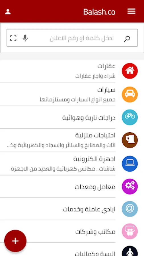 - A user of the Balash application can follow a specific category, company or person where notifications are obtained when they post ads and communicate directly with the seller.