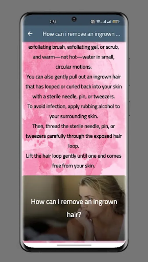 Ingrown hair removal application is a smart app designed for you personally to tell you how to remove Ingrown hair!