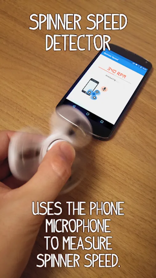 Speedometer mode: holding the spinner in your hand, put it near the phone microphone and spin it as fast as you can. Spinner Meter will calculate the RPM (rotations per minute). Use in a silent room!