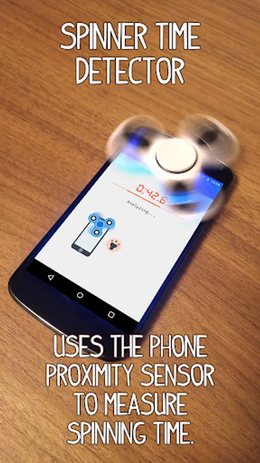 Spinning time mode: place the spinner on the top center of your phone, just over the proximity sensor, and spin it. Spinner Meter will start a timer and automatically stop when the spinner stops rotating.