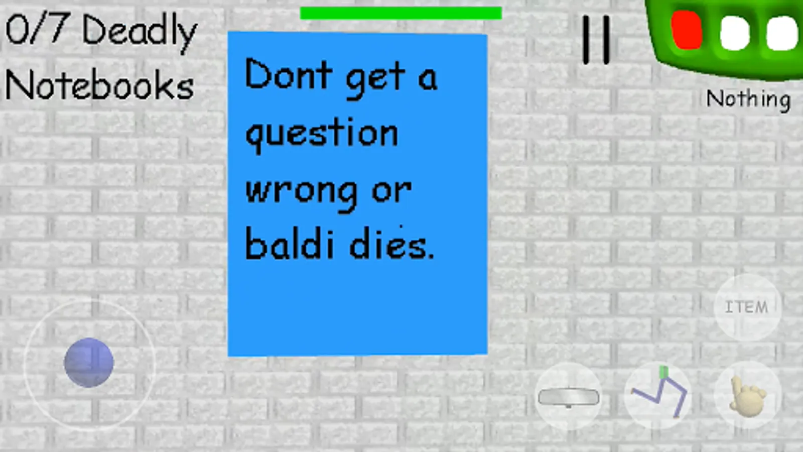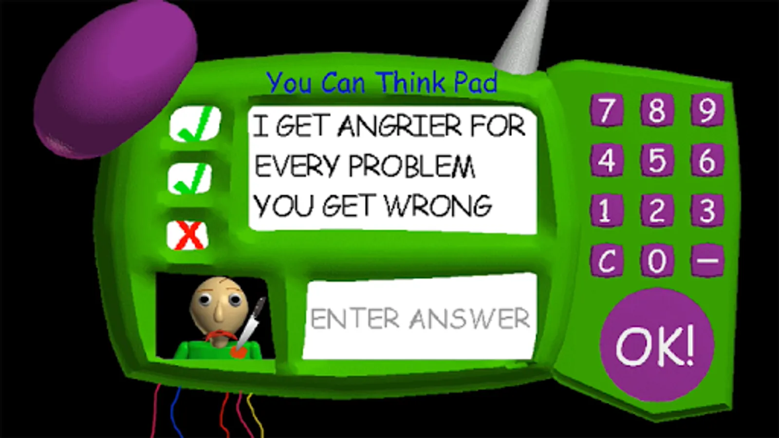 It is unacceptable! Why they killed baldi our beloved math teacher? Why baldi has to die? As you know baldi accidentally attach himself to YCTP which make baldi will be killed when the 2nd question is wrong and you must already know that 2nd math problem from you can think pad is impossible to be answer correctly. Don't get a question wrong or baldi dies instantly. So rip baldi hopefully you go to heaven and rest in peace also become an angel in heaven, you will be missed by all of your students :(