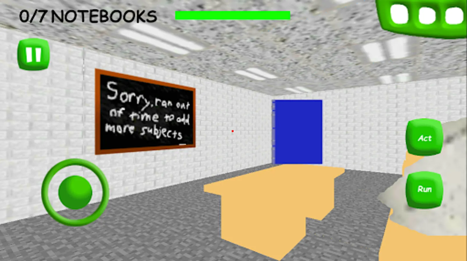 It's really a bad day, baldi is sick now, he can't teach mathematics properly and you are his only last hope for help about education and new learning test. Teacher baldi need to rest without any disruption because baldi is sick and have a bad mood. He doesn't want to punish his student or do anything like usual baldi would do. Yeah, it's really bad situation here. He need to meet doctor as soon as possible but still need to teaching a student some lessons in the school.