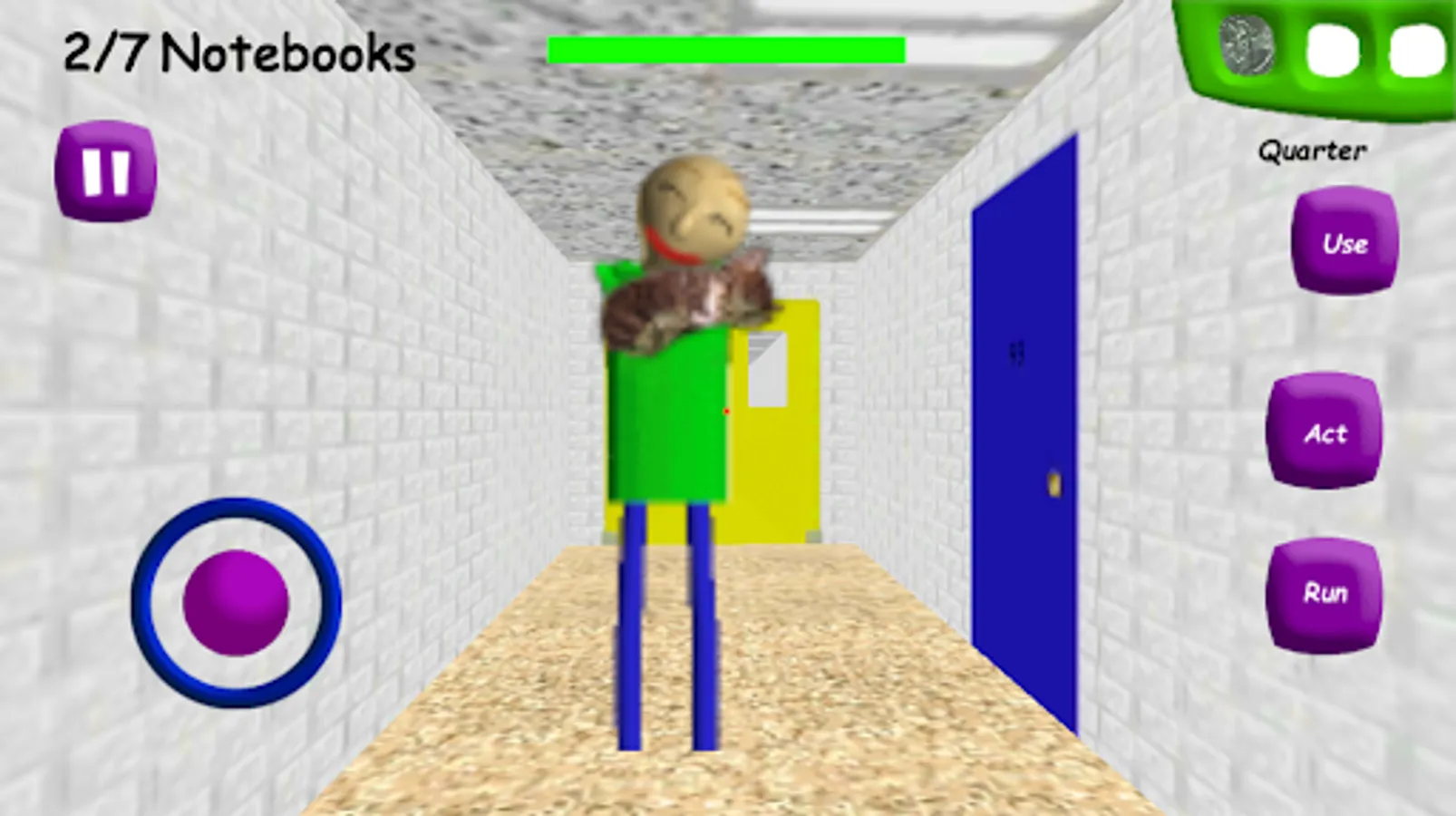 Not only baldi like cats mod version, everyone in this school loves cats, they loves everything related to kitty cats. They happy to share their expression to other animals. Do you loves cats too like baldi father? Help him collecting all 10 notebooks so baldi have more time to play with his cat. When taking a notebooks make sure you get true answers related to math equation. Wrong answer baldi will get distracted because he hate undisciplined students.