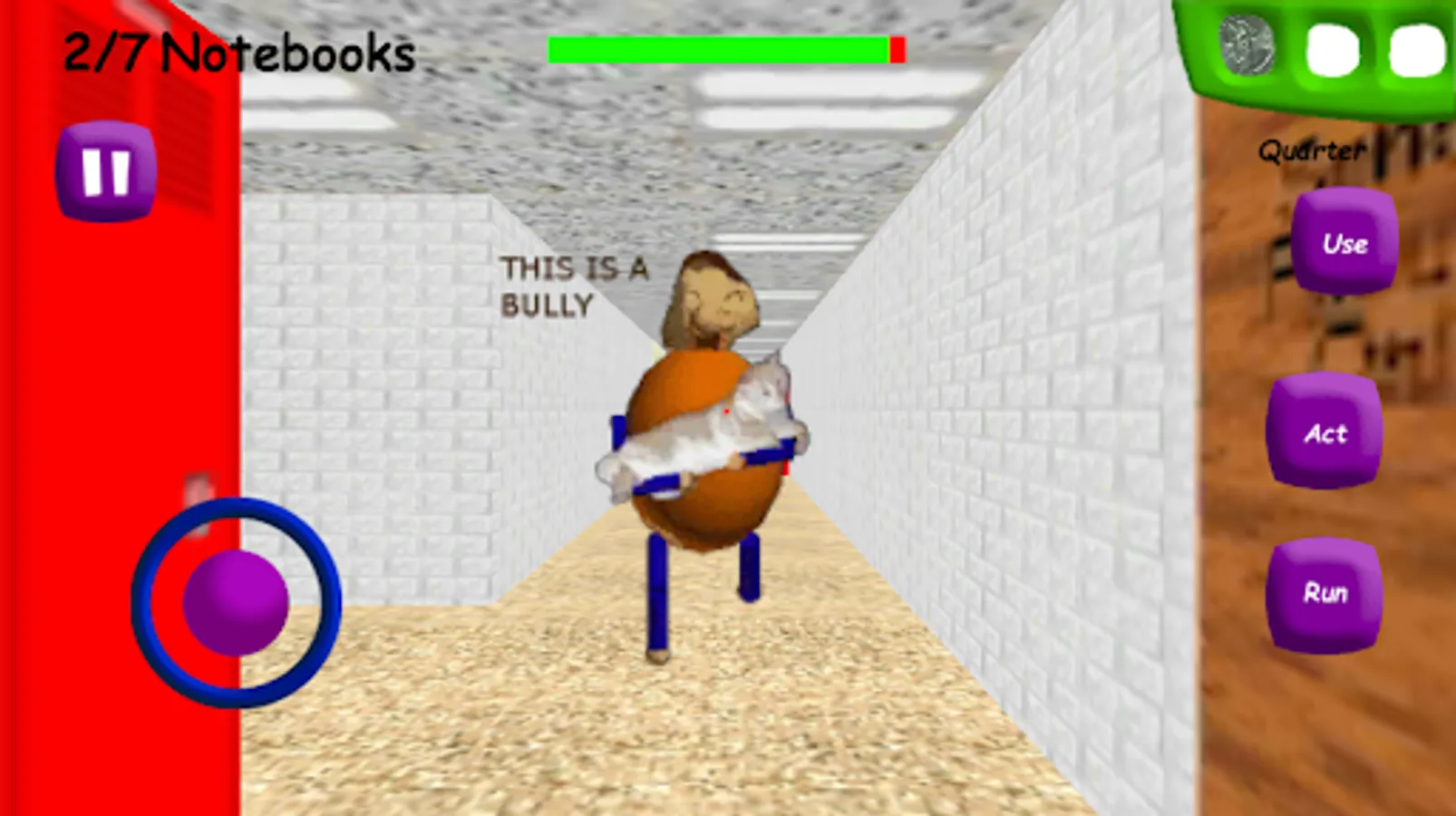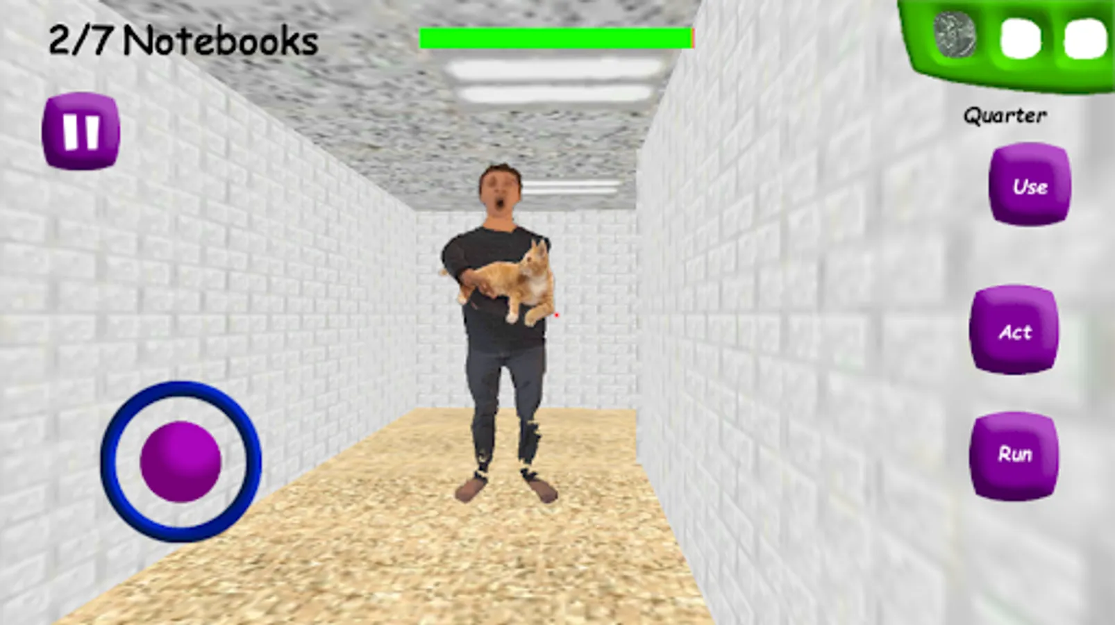 This is not only simple mod version. This baldi loves cats mod game remastered have secret and alternate true ending. Try to complete it with answering all true answers and answering all wrong answers to get that proper ending. Some action might trigger realistic baldi mod version who want to pet a kitty. You need to explore more possibilities from items, special room, special answers that can reveal who psycho horror scary baldi loves cats is. In every room you will find many thing from explore such as items like quarter until scissors you can take advantage to escape from baldi friends such as playtime or principal.