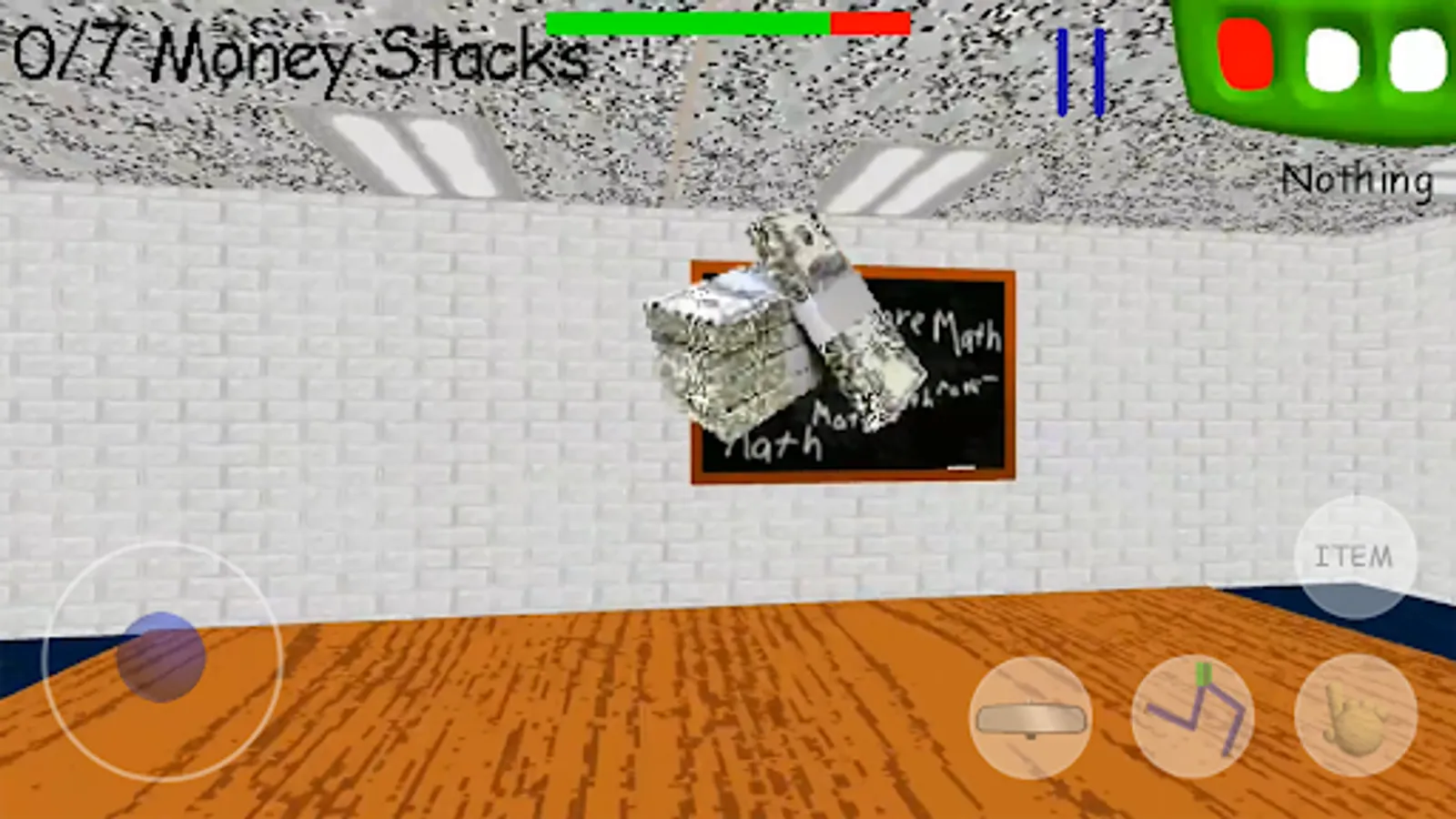 Because of scary baldi greediness after winning the lottery and makes baldi has a lot of stacks of money, principal decided to left the schoolhouse, meanwhile you heard that baldi won the lottery and baldi is rich so you decided to go back to the school and planning to steal all baldi money. But things is not goona be so that easy at all. You should be careful, because baldi likes money and hates when all of his money get stolen by you. If you get a problem answer wrongly, your action in stealing baldi money will be caught by security camera and of course baldi loves money will start finding you.