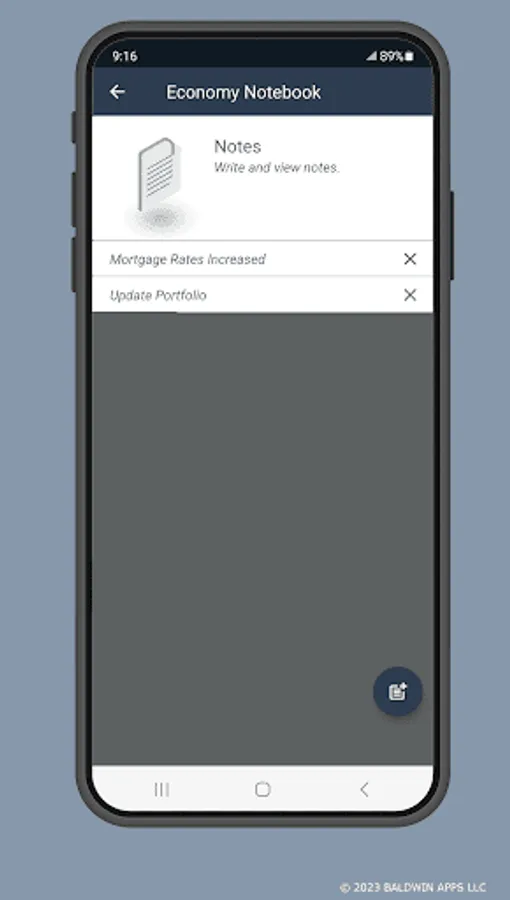 Whether it's a thought about a specific economic trend or a reminder to follow up on a particular market shift, you can quickly jot it down and save it for later.
