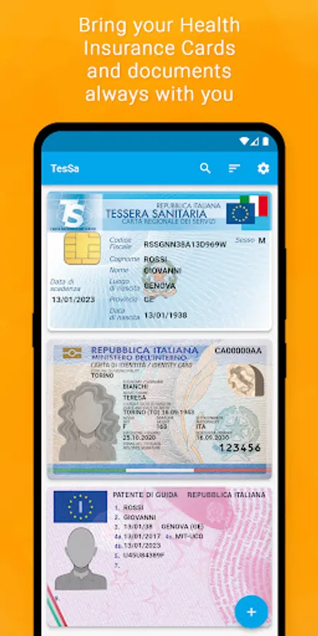 With TesSa you can carry your Health Insurance Card always with you, along with those of your family or friends.
