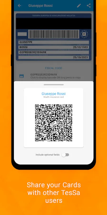 With TesSa you can share your Health Insurance Card and documents with whoever you want by using a QR-Code or by sending an email/message.