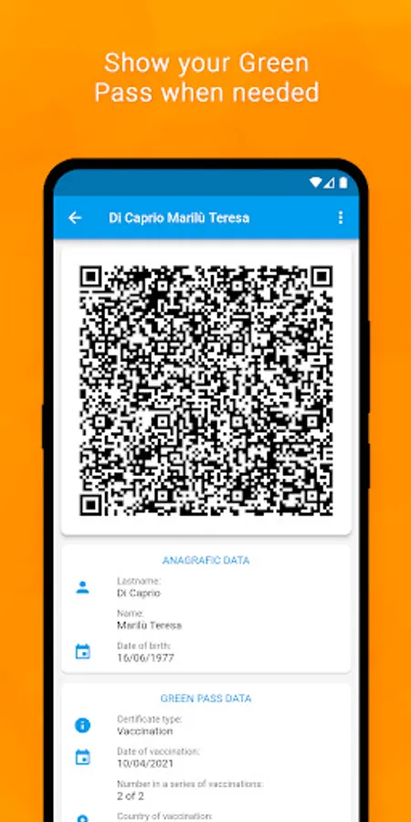 Like for the Health Insurance Cards, you can quickly display the QR-Code of every Green Certification and scan it when necessary, for example in public transports, at the restaurant, ecc...