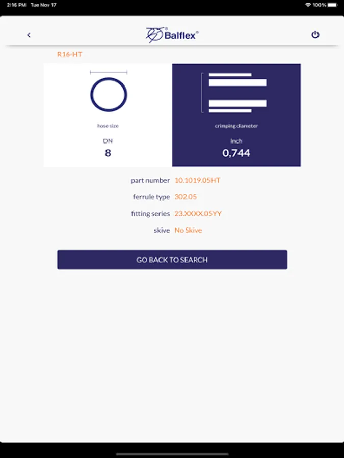 The Balflex Crimping Specs App, it is a tool to help the users of Balflex products to find the perfect match between hoses and fittings. When the hose to be used it is identified, the App will help you to choose the best fitting solution and will provide the most accurate crimping information.