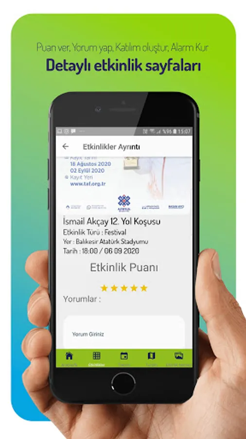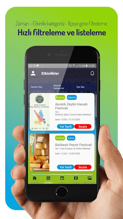 The Event Balıkesir application brings together all the current events in Balıkesir and all the guide information required for the trip on a single platform. This application, which is a guide for your Balikesir trips, provides you with directions to events such as concerts, symposiums, theaters, exhibitions, cinemas, conferences, festivals, fairs in our city, as well as to the event centers where these events take place, using your location. In the tourism promotion sections, it introduces important tourism places that you can do for sightseeing purposes such as recreational areas, beaches, national parks, ruins, museums and gastronomy and guides you to these places with your location information. When you first enter the application, you can see the upcoming events closest to your location, report that you will participate in the events, and rate and comment on the event. It serves as an important guide application for your gastronomic trips, such as what to eat in Balıkesir, what is famous, how to get there.